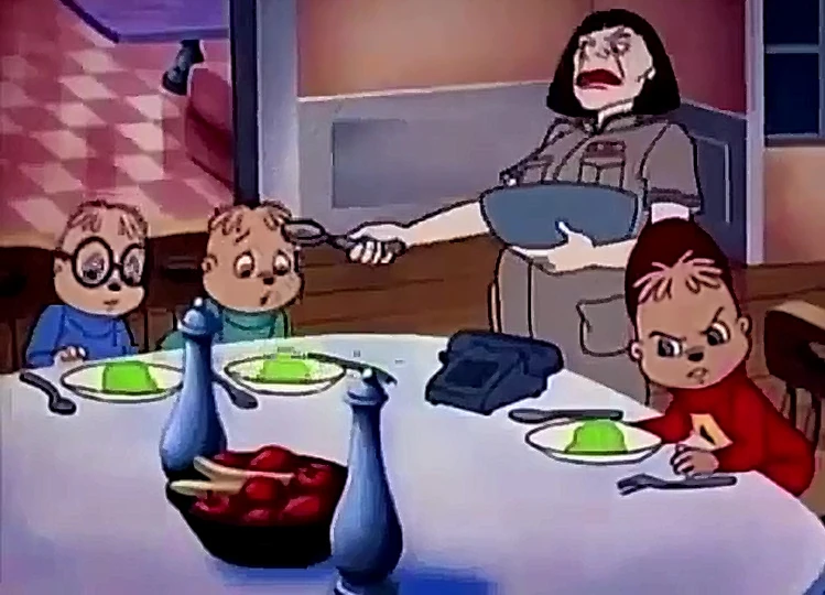 - When Alvin and Simon are captured by Helga and escorted to the kitchen, Simon says he forgives Alvin for everything. Alvin asks if a debt of 75 cents is also forgiven, to which Simon responds "Well, almost everything!" For reasons unknown, this small scene was censored from the DVD release.