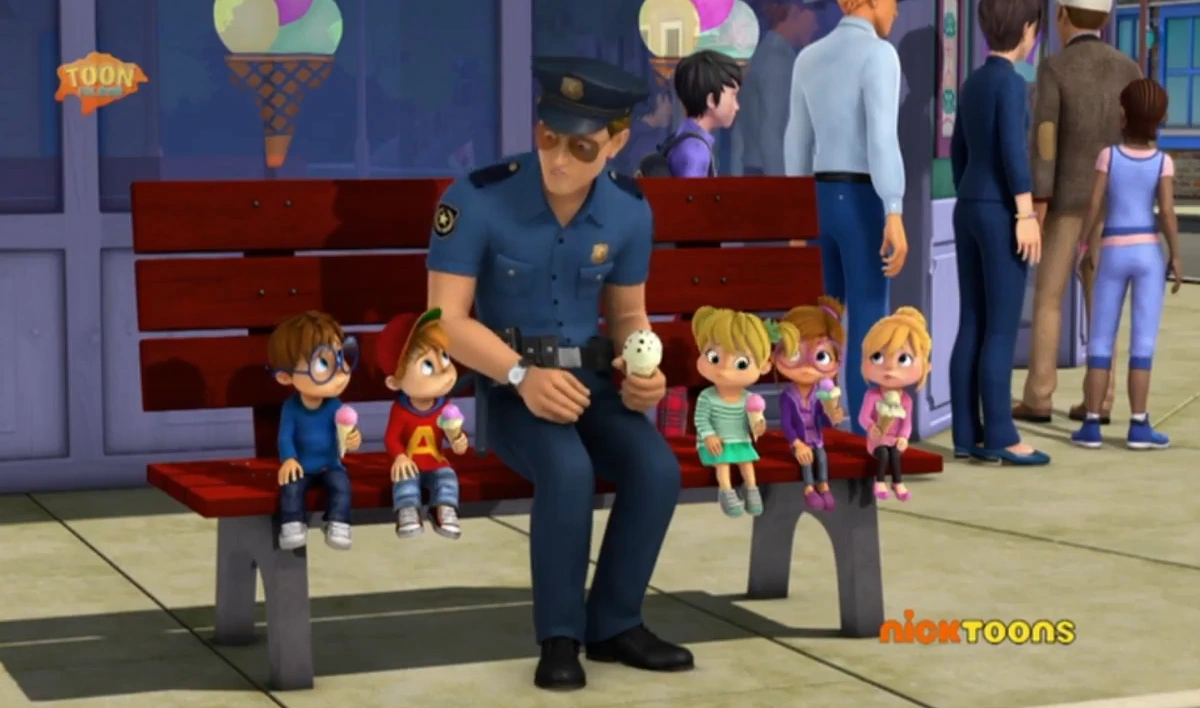 Theodore is keeping everyone waiting at the ice cream store. The boys hear Kevin from outside screaming in horror. A boy stole his bike. Officer Dangus goes to stop the boy. But then, a man elbows him. Then he said "It's go time!". He slammed a siren on his car, speeds after the boy and threw a golden pen on the front wheel making him fall off and straight into the dumpster. Dirk (the guy chasing the boy) threw Kevin's bike to him. Simon asks if he's a cop. Dirk says no. He says he's a detective. Then he says Officer Dangus is his brother. Then Officer Dangus takes the boy out. Dirk drives away with Theodore's ice cream (he already picked) to the Police Station. Dirk is teaching Officer Dangus, and the other officers about a move called King Cobra. He asks Doris for help (Officer Dangus's real first name). The boys tell Dave the whole story during dinner. Theodore and Simon want to commit a fake crime, and let Doris solve it. Simon makes a robot so it could steal things from the Chipette's Treehouse. Dirk and Doris come to the Seville yard. Dirk blames everything on Simon. The next day, Theodore is keeping people waiting again at the ice cream shop. Everyone and Doris have ice cream after going ahead of Theodore. (Except Dirk). Everyone tells Doris to stand up for himself. Except Alvin, who's saying Dirk and him are cool. And Simon and Doris are nerds. Simon then shoves Alvin's ice cream into his face. Theodore comes out with his chosen flavor, Vanilla. That evening, Doris and the other officers have their class with Dirk. During the class, Doris tells Dirk he's a King Mongoose while he's doing King Cobra move. Dirk then does an eagle move. Alvin accepts Dirk is not cool. Doris declines the class, then Dirk leaves. They all are eating ice cream the next day. Then, Doris got a crime to do. Then he throws his ice cream on Theodore. And when he put on his sunglasses. He hit his eyeball. Theodore claims he should've gotten peppermint (the flavor of Doris's ice cream).