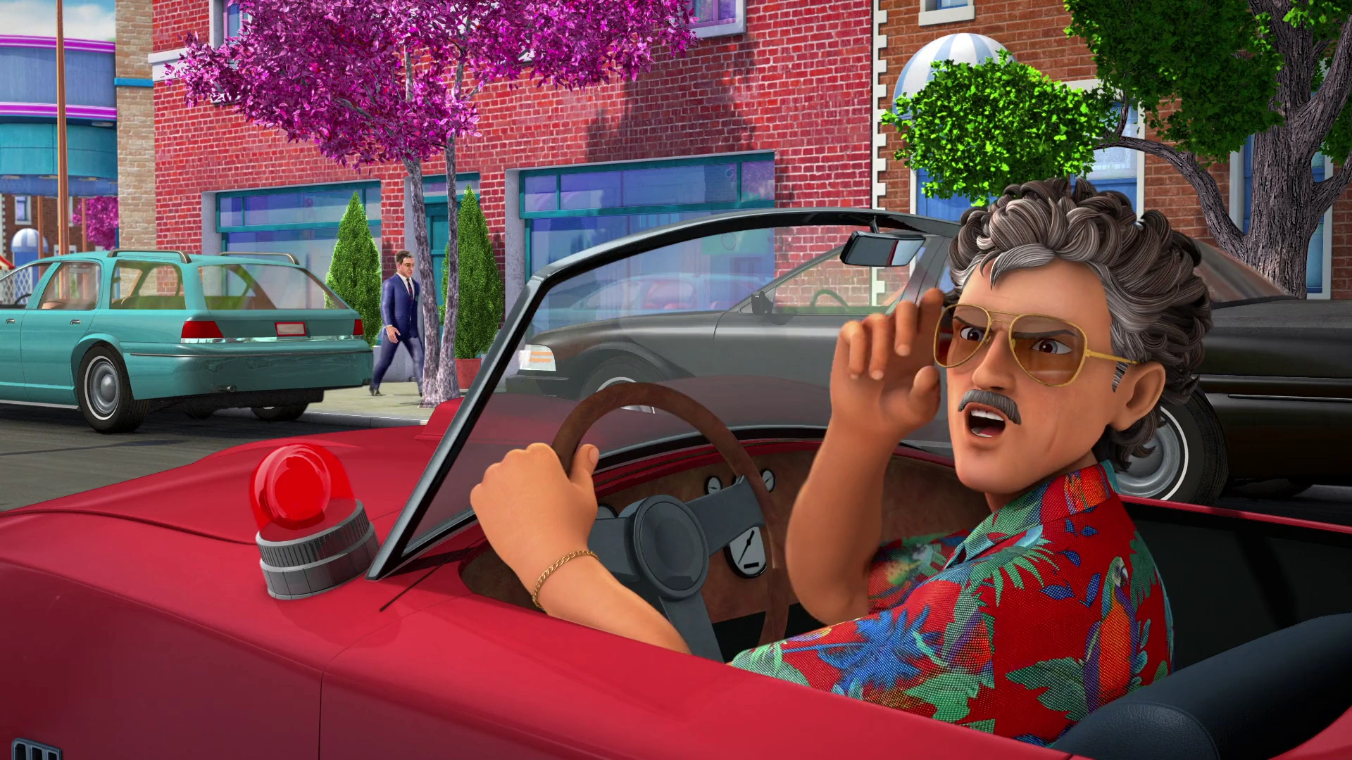- A retextured version of Principal Meadows’s character model with orange hair, and a blue dress can be seen in the ending shots of the episode waiting in line for ice cream.