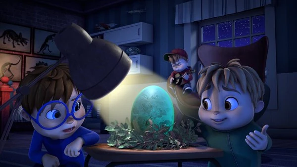 Theodore beats Alvin at a video game when the door bell rings and Theodore excitedly answers it only to be disappointed to find a salesman. Soon after Alvin's invited to Sandy's party, his brothers attempt to get Theodore to explain the reason he's answering the door so fast, but he refuses to tell. They spy on Theodore as he collects sticks and feathers for a nest when Jeanette calls down to him. Upset that Theodore confided in them and not him, Alvin confronts The Chipettes only for Brittany to counter citing Alvin's inability to keep a secret. Theodore finally reveals that he bought a dragon egg through a secret society, much to Alvin's dismay. Alvin and Simon argue to Theodore that he's been conned and he lost all his money for nothing, but when Dave finds out he makes them respect Theodore's mission. The elder siblings are tasked with egg duties while Theo protects the egg from the evil troll king. Once the instructions are finished, the egg is ready to be hatched under the full moon. Desperate to go to the party and being unconvinced the egg will even hatch, Alvin talks Brittany into pretending to be the evil troll king in order to steal the egg without affecting Theo's beliefs. His brothers learn Brittany stole a decoy egg and, when they go to find the real egg, Brittany is discovered to be the evil troll king as well. The real egg is found broken and a shadow of the dragon envelops them from above leaving Alvin, Simon, and Brittany to run away in fear while Theo walks away happily.