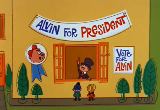 - The segment begins with Dave finishing up some lyrics for The Chipmunks' next song. Meanwhile, Alvin is holding a speech to declare why he should be voted President. After a brief confrontation with Dave, the boys sing their new song with Alvin interrupting occasionally about his campaign. His supports grow until they are all chanting "We want Alvin!" by the end of the song.