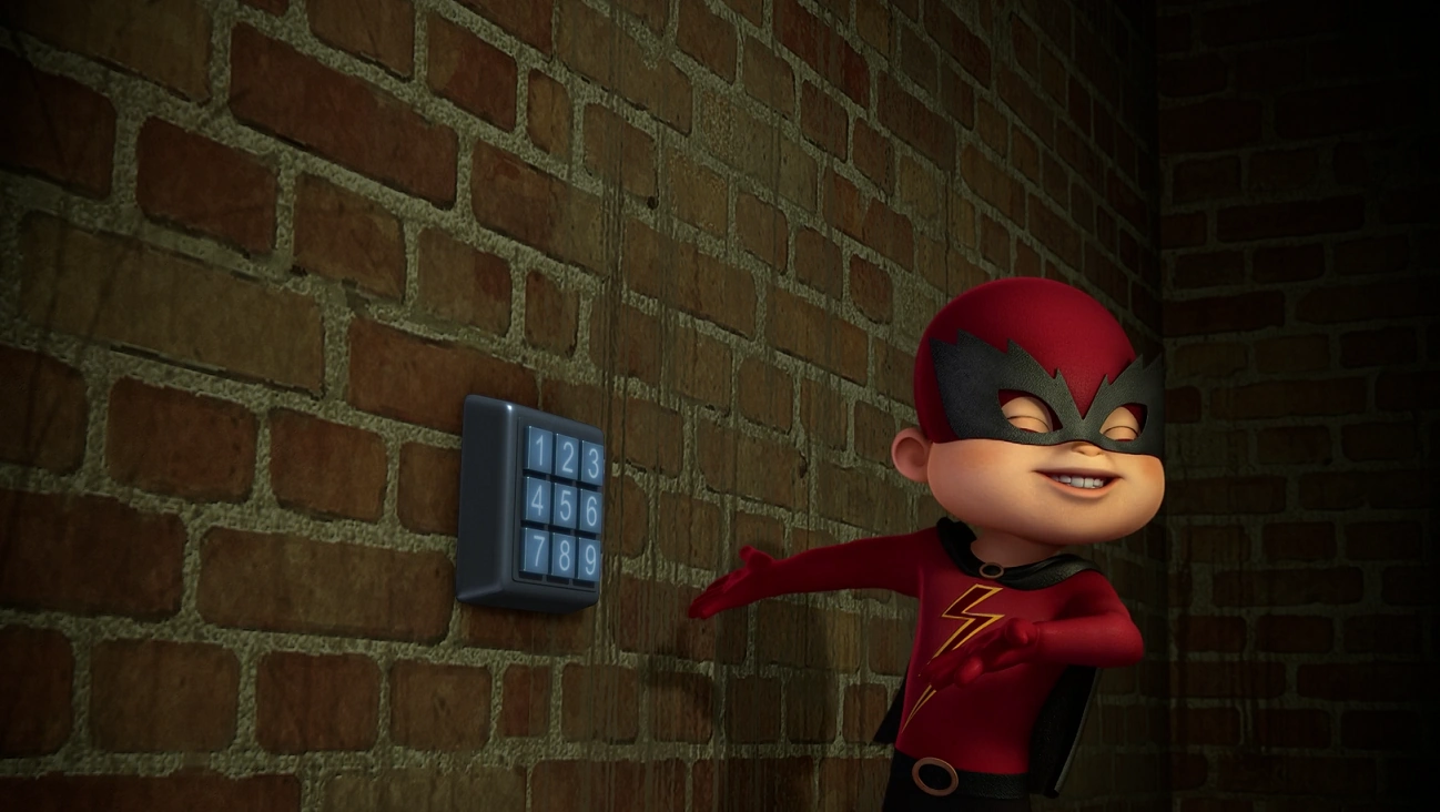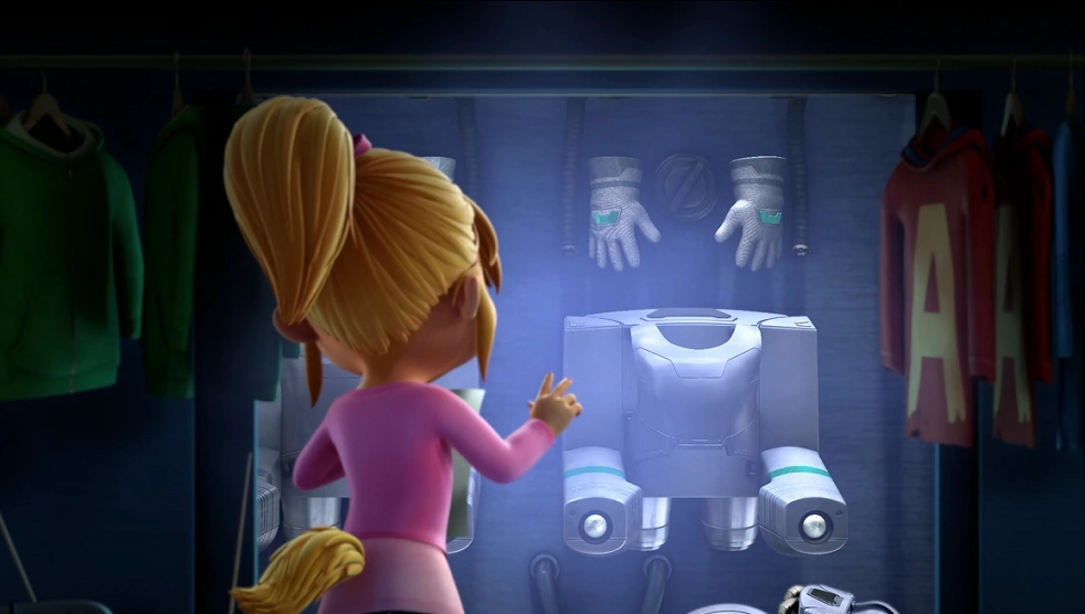 This room is also seen briefly in Super Girls though the keypad combination is shorter and different from the original code, which would imply Simon changed the code, but Alvin learned the combination again. Alvin opens the room to change into his superhero costume first seen in Super Heroes.